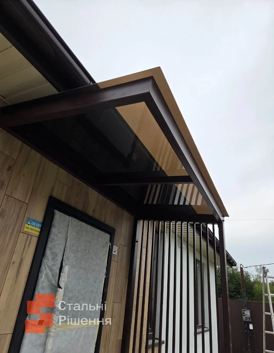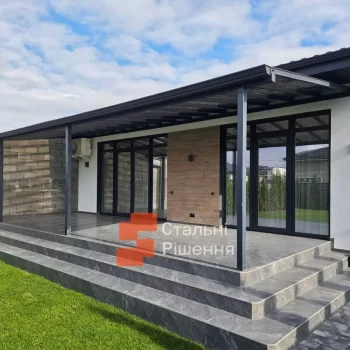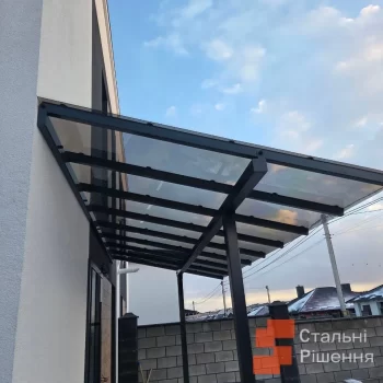 Фахівці компанії «Стальні рішення» втілюють будь-які побажання замовника та виконують навіси різного виду: