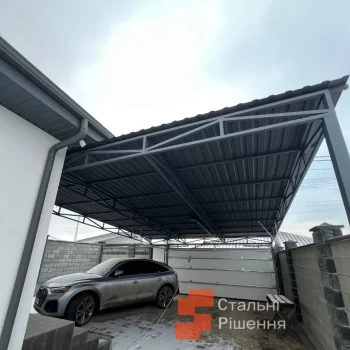 Ще одна поширена конструкція – навіс для авто (карпорт). Коли немає можливості побудувати гараж – навіс захистить вашу автівку від дощу і палючого сонця та стане незамінним помічником в сніжну і морозну погоду, адже не треба буде годинами прибирати снігову шапку з машини і очищати скло від льоду.