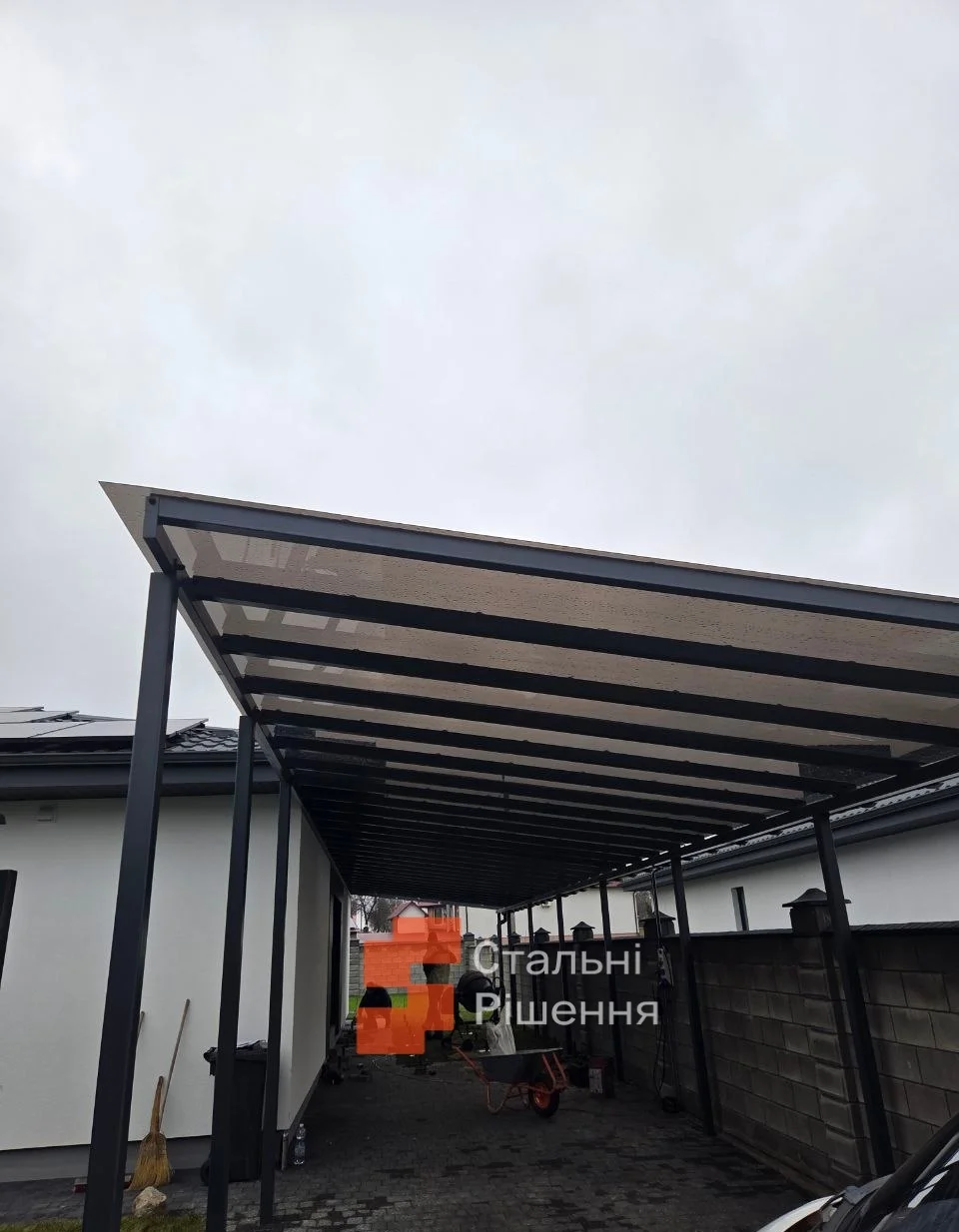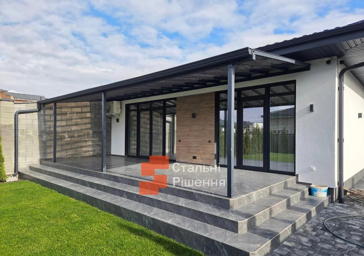 - Покриття на вибір: полікарбонат, скло, профнастил, сонячні панелі