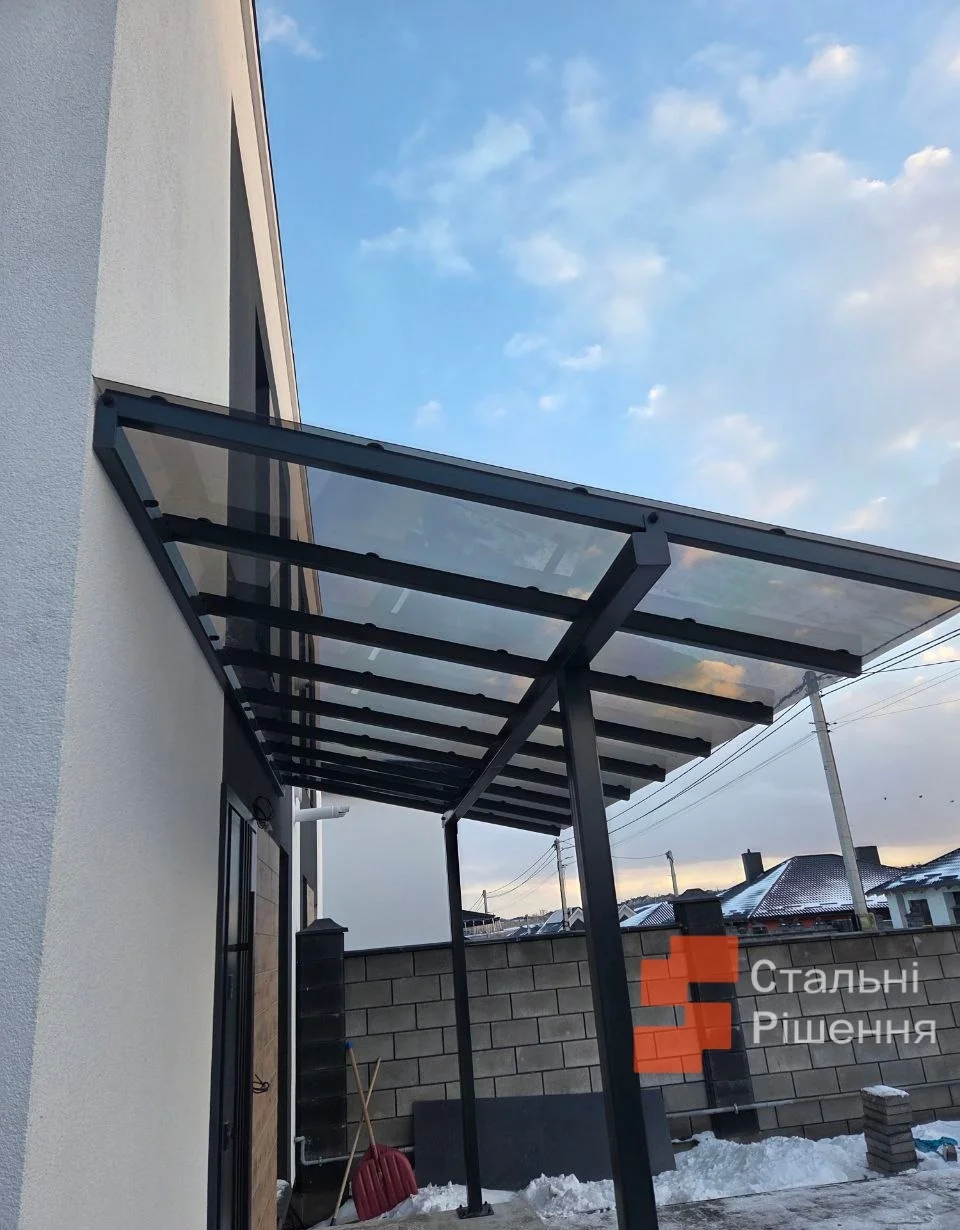 | Козирки над входом | Полікарбонат / скло | Компактні, захист від опадів | Приватні будинки, під’їзди, офіси |