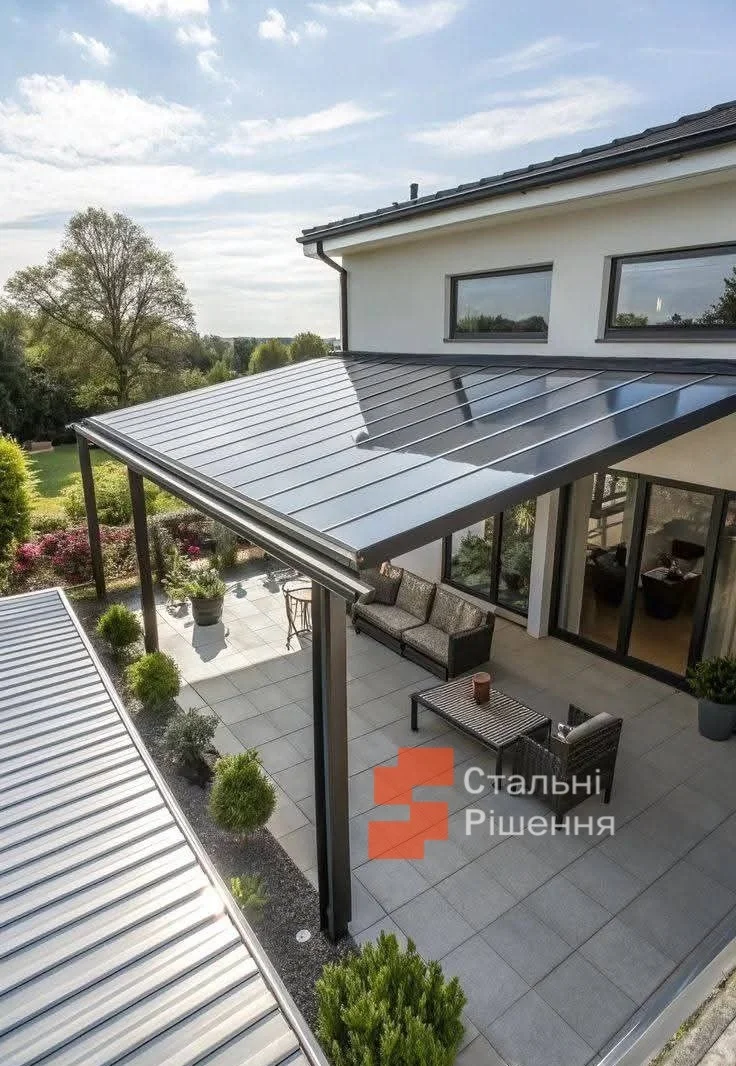 | Навіси над терасою | Полікарбонат / сонячні панелі | Тінь, комфорт, база під освітлення | Приватні будинки, кафе |